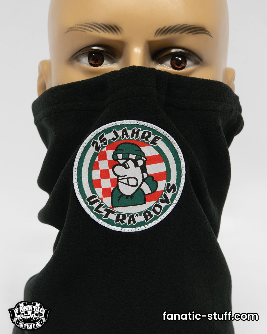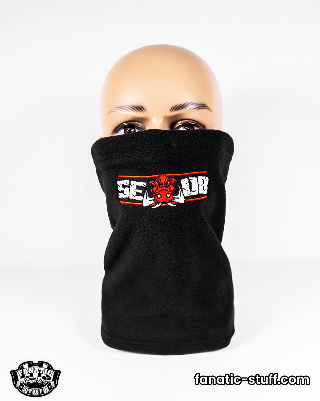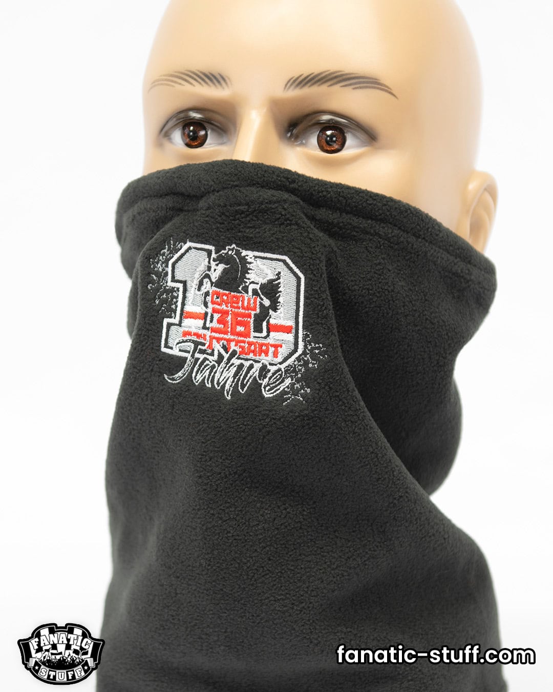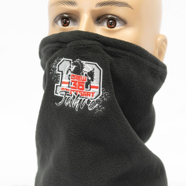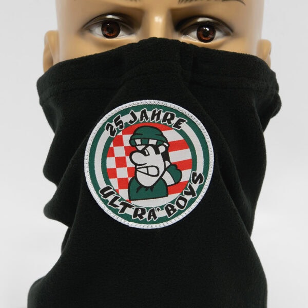 When temperatures drop in the fan sections, a neck warmer is exactly what you need. It keeps you warm, is comfortable to wear, looks good and can be customised individually. We offer two different versions: